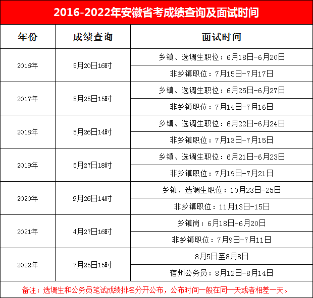 2016-2022年安徽省公務員成績查詢及面試時間匯總